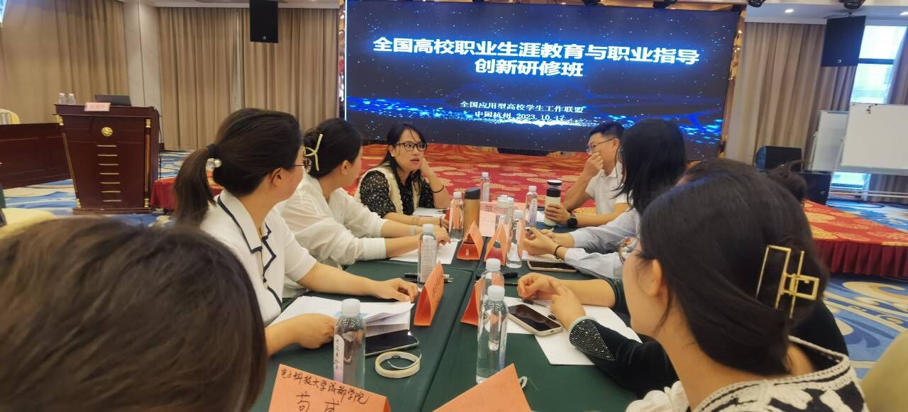 为组织筹备好首届全国大学生职业生涯规划大赛校园选拔赛,帮助学校准确理解大赛的工作目标和有关要求,10月16日-18日,由全国应用型高校学生工作联盟主办的全国高校职业生涯教育与职业指导创新研修班在浙江杭州举行。我校毕业生就业创业指导中心人员和二级学院辅导员代表参加研修班。