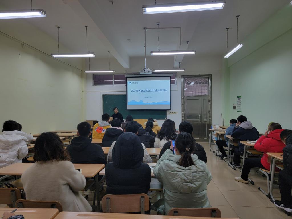 为帮助辅导员熟悉就业工作业务,规范开展就业工作,提高毕业生就业指导和服务水平,确保我校2024届毕业生就业统计数据上报工作顺利开展,12月20日,毕业生就业创业指导中心在1301教室开展就业工作业务培训,主要包括就业证明材料收集报送流程、毕业去向登记系统操作、系统规范填报等培训。2024届毕业班辅导员及毕业生就业创业指导中心人员参与培训。