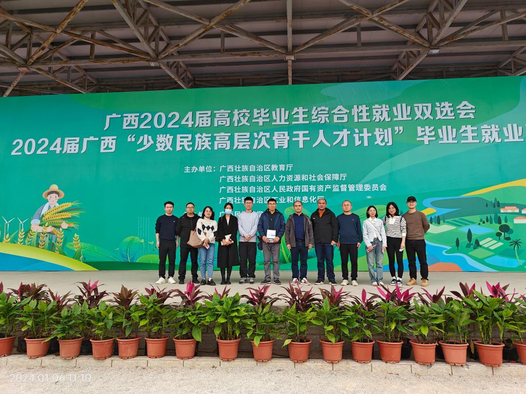 1月6日,2024届广西综合性高校毕业生就业双选会暨2024届广西“少数民族高层次骨干人才计划”毕业生就业双选会在广西民族大学思源湖校区举行。我校组织毕业班师生现场参与招聘会。