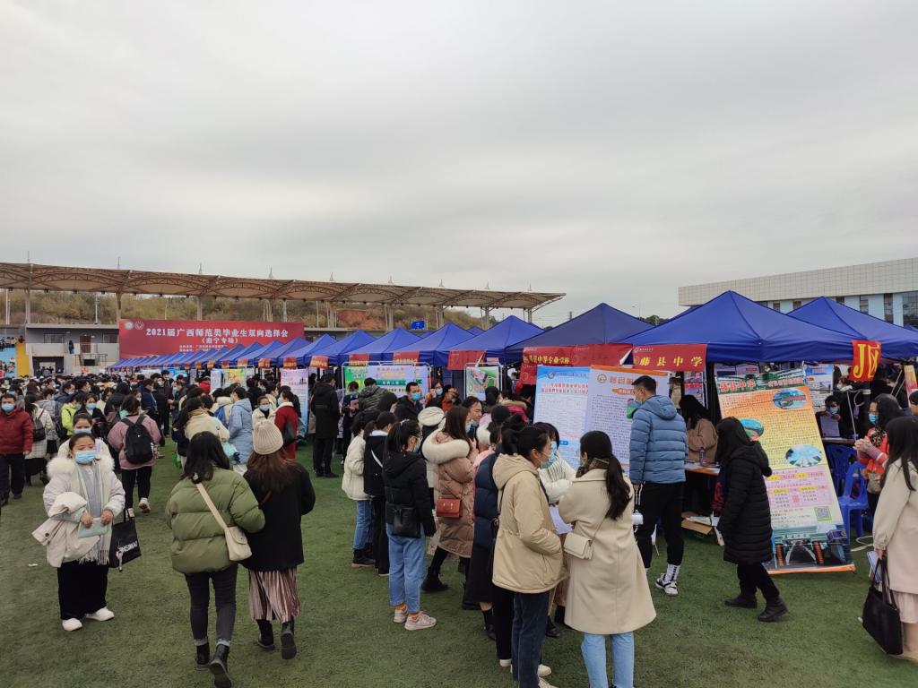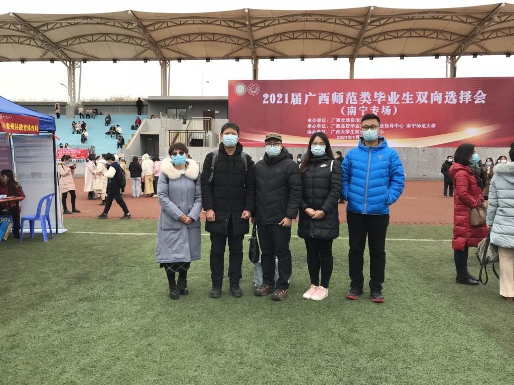 2021年1月9日,由自治区教育厅主办的广西2021届师范类毕业生就业双向选择洽谈会(南宁专场)在南宁师范大学五合校区举办。我校组织近300名毕业生参加本次双选会。