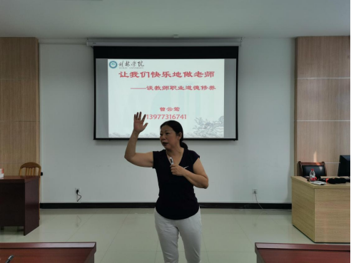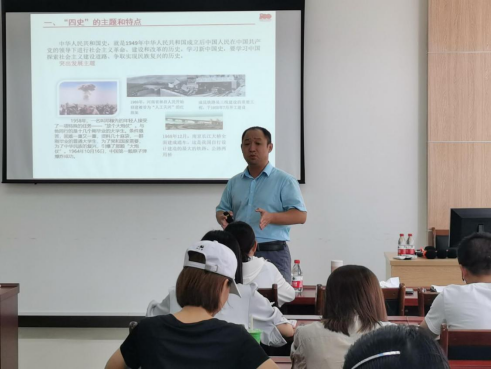 本次培训邀请到了马克思主义学院院长张常永和曾云莺两位老师,两位主讲老师分别做了题目为《不忘来时路,奋进新征程——习近平总书记七一重要讲话学习体会》和《让我们快乐地做老师》的专题培训。张院长从“四史”的主题和特点、七一重要讲话主要精神和如何开辟新征程等三个方面做了分享,同时与全体新教职工一起重温中国共产党百年奋斗历程,激励大家要为中华民族的伟大复兴而共同奋斗。曾教授以“快乐”为题,结合自身丰富的教学经验和人生经历,寓教于乐地给新教职工分享了教师职业道德、教书育人、严谨治学等内容。整个下午的培训内容详实,气氛活泼,高潮迭起,掌声不断。