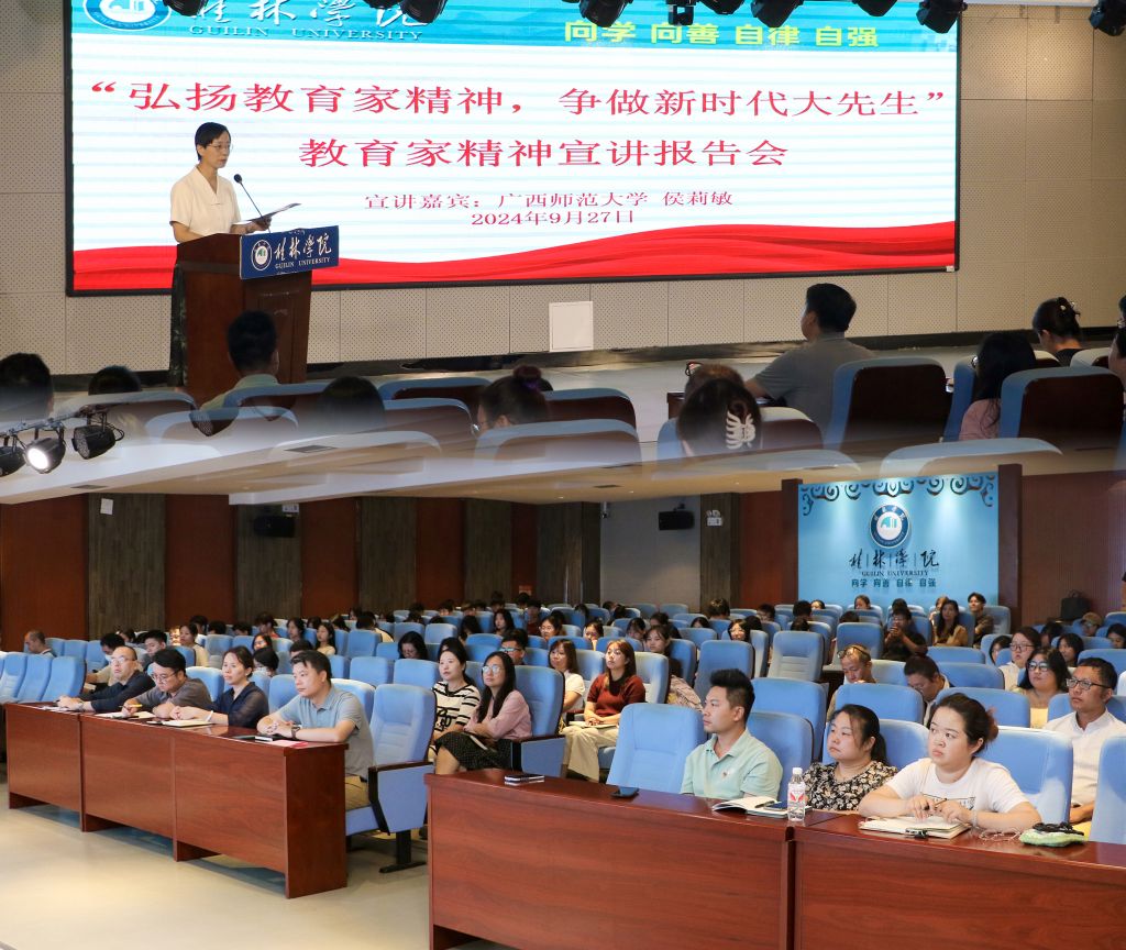 宣讲会上,侯莉敏以《以教育家精神践行新时代教师的使命》为宣讲主题,通过教学改革的先行者、攻坚克难的探路者、学生成长的引路人这三个角色,讲述最质朴动人的教育故事,分享用心育人、潜心教学的感悟,以强烈的家国情怀观照教育事业,将“小我”融入“大我”之中,在成就“大我”中升华“小我”,将争做新时代“大先生”为目标,把培养新时代的中国人为己任,甘为人梯、甘当学生发展的铺路石,深刻诠释了教育家精神和教育真谛。她呼吁桂林学院广大教师及师范生,以教育家为榜样,以高尚的教育情怀和追求教育真谛的精神为感召,牢记中华民族伟大复兴的历史使命,秉持中华优秀传统文化的师道传承,为教育家精神的传承与践行不懈努力。