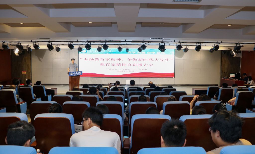 蒋毅主持宣讲报告会时指出,本次宣讲会主题鲜明、内容生动、意义重大,进一步引导桂林学院广大教师深入把握教育家精神核心要义与实践要求,争做“四有”好老师,争当为学、为事、为人的“大先生”。他强调,强国必先强教,强教必先强师,强师必先强德。桂林学院将以此为契机,把教育家精神高位引领与师德底线构筑相结合,完善规范教育、榜样教育、警示教育、文化养成“四位一体”的师德教育体系。坚持师德师风第一标准,完善师德师风行为规范,推动教育家精神落实落细,为做大做强桂林学院、培育堪当民族复兴重任的时代新人、建设中国特色社会主义教育强国汇聚磅礴力量。