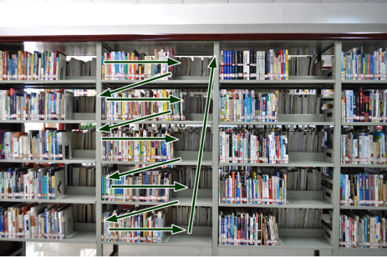 我校图书馆采用《中国图书馆分类法》(简称中图法)进行文献分类。严格按书脊上的索书号逐架从上到下,从左往右呈“Z”字形走向进行排列。