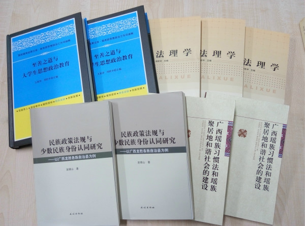 近日,我院院长周世中教授为图书馆赠送了其新出版的学术著作,包括广西师范大学出版社出版的《法理学》、《广西瑶族习惯法和瑶族聚居地和谐社会的建设》和中国文史出版社出版的《至善之道与大学生思想教育》等。另外,图书馆还收到广西师范大学法学院赵锦山教授赠送的专著《民族政策法规与少数民族身份认同研究》。