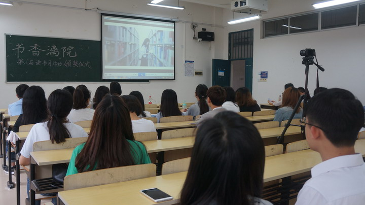颁奖仪式上,首先播放了微视频比赛一等奖作品,随后主持人公布了本次读书月各项活动的获奖者名单并为获奖同学颁发荣誉证书和奖品。李琪,杨洪梦,蔡大艺等同学为颁奖仪式带来了精彩的朗读表演,用声音传递了文字的魅力。