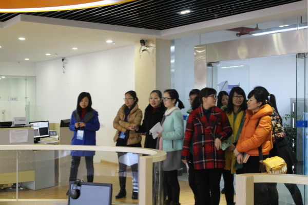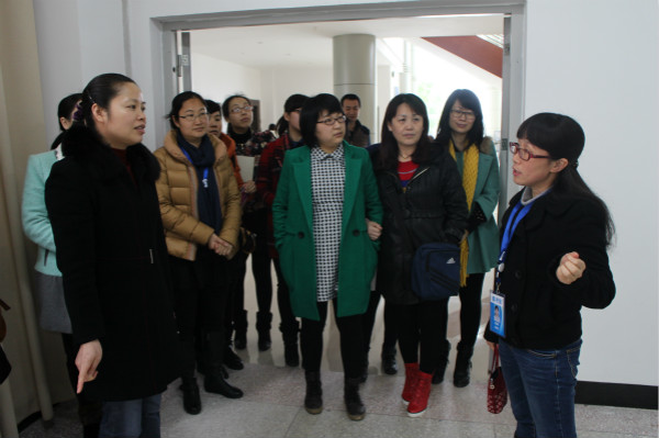 我院图书馆一行在该校图书馆综合业务办林主任的引导下,先后考察了该馆旅游专题书库、艺术设计专题书库、期刊阅览室、电子阅览室、多媒体视听中心、自主学习中心、学术研讨中心等馆区。在这个过程中,双方就馆区环境建设、文献和电子资源建设、信息技术建设、读者服务、读者培训等业务和工作进行了深入的交流与探讨。此外,我院图书馆人员还就采编、流通、综合服务等工作进行了对口交流。参观学习结束后,双方人员在图书馆大门前进行合影留念。