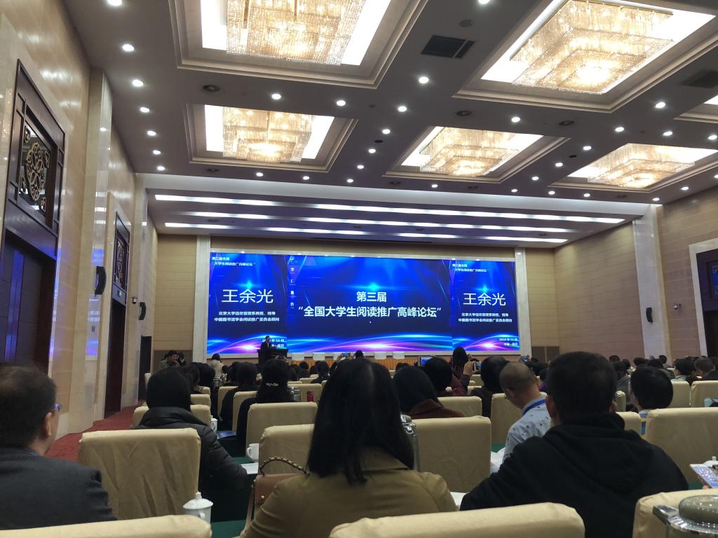 11月15日,由中国图书馆学会阅读推广委员会主办,中国图书馆学会阅读推广委员会大学生阅读推广专业委员会、中国图书馆学会阅读推广委员会阅读与心理健康专业委员会、南京艺术学院图书馆共同承办的第三届“全国大学生阅读推广高峰论坛”在南京隆重举行,全国206所高校图书馆380余名代表参会,我校图书馆负责阅读推广工作的两位馆员代表参加了本次论坛。