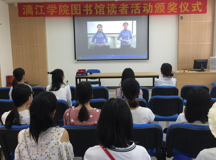 知识是人类进步的阶梯,阅读则是了解人生和获取知识的重要手段和最好途径。为了让更多的师生认识到阅读的重要性,参与到阅读的行列中,营造浓郁的书香氛围,图书馆于本学期开展了“书香漓院”第九届读书月系列活动,共计约600人次积极参与活动,部分同学表现优秀,获得表彰。6月15日下午,读书活动颁奖仪式在多功能阅览室报告厅举行,部分馆员及60余名同学参加了本次活动。