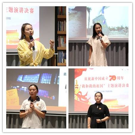 在举国同庆中华人民共和国成立七十周年华诞之际,由图书馆举办的以 “我和我的祖国”为主题的演讲比赛决赛,9月29日晚在独秀书房(漓院店)举行,活动旨在通过演讲这一形式,让同学们讲述自己对祖国的热爱,对祖国发展取得成就的自豪,弘扬爱国主义精神,坚定四个自信,激发同学们的爱国情和报国志。
