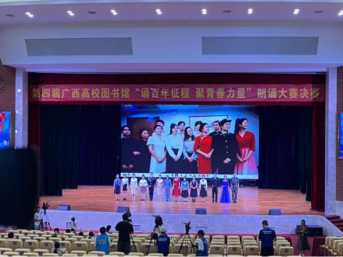 据悉,第四届广西高校图书馆“诵百年征程 聚青春力量”朗诵大赛由广西高教学会图书馆专业委员会和广西高校图书情报工作指导委员会主办,广西各高校图书馆承办,旨在引导在校大学生深刻感悟习近平新时代中国特色社会主义思想的真理力量和实践伟力。本次大赛历时2个多月,参与院校55所,参赛作品达16633个。活动自9月开展以来,我校图书馆高度重视认真部署,积极发动人文学院、传媒与新闻学院等二级学院学生参与,初赛阶段共收到参赛作品906个,参与人数达973人。图书馆还组织了由相关专业老师组成的组成的评审组对参赛作品进行严格评审,选送了16个作品参加全区复赛,经过大赛组委会评选,最终有二个参赛作品入围现场决赛并分获一、三等奖。
