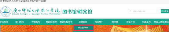 1.登陆广西师范大学漓江学院门户网站点击【图书档案】进入图书馆/档案馆网站。