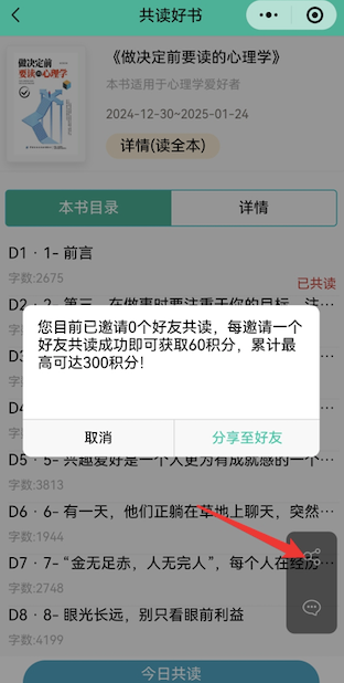 第四步:点击开始,朗读后保存、分享个人心得感想。还可以邀请身边的亲朋好友一起参加共读活动。