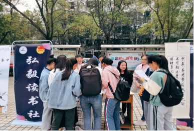 此次招新活动定在10月30、31日两天。各部门根据先前的工作安排各自履行着自己的职责,齐心协力将户外摆展布置完毕。到场的每一位社团成员对待工作都十分地积极,将宣传工作落实到位。同时,我们凭借着极有效的宣传和有趣的猜书名活动吸引了许多新生前来报名,截止目前,共有132名新生报名参加弘毅读书社。现场气氛活跃,各会干都十分耐心地为新生解答,体现了作为学长学姐应有的风范。