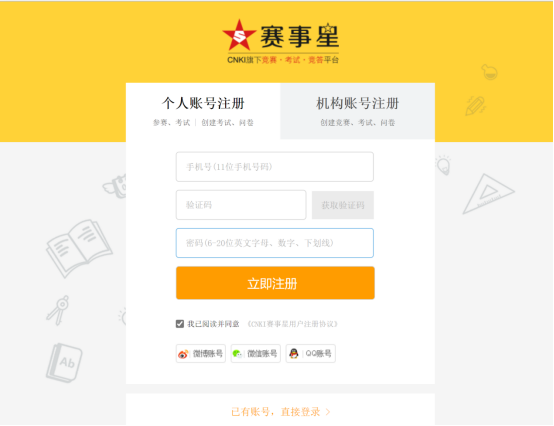 第三步:默认为“个人账号注册”,依据提示用手机号注册后即可答题。