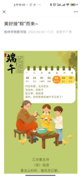 农历五月初五,粽米飘香,又至端阳。端午节是中华民族古老的传统节日之一,传承千百年传统文化,承载着厚重的家国情怀。在端午节来临之际,根据学校《关于组织开展我们的节日·端午节主题活动的通知》结合图书馆/档案馆的实际情况,通过研究制定具体详细活动的方案,精心组织策划全体员工开展了以“强国复兴有我”为主题的各类端午节文化活动。通过活动,在馆内外营造了良好的节日氛围,使师生们感悟到端午节蕴含的文化底蕴和精神力量,感受到浓浓的传统文化和家国情怀。