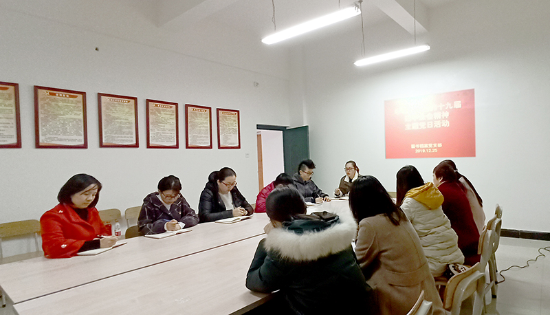 为深入学习贯彻党的十九届四中全会精神,12月25日,图书档案党支部在党员活动室,开展了以学习贯彻党的十九届四中全会精神为主题的党日活动。活动由图书档案党支部书记陈雪萍主持,支部全体党员参加学习。