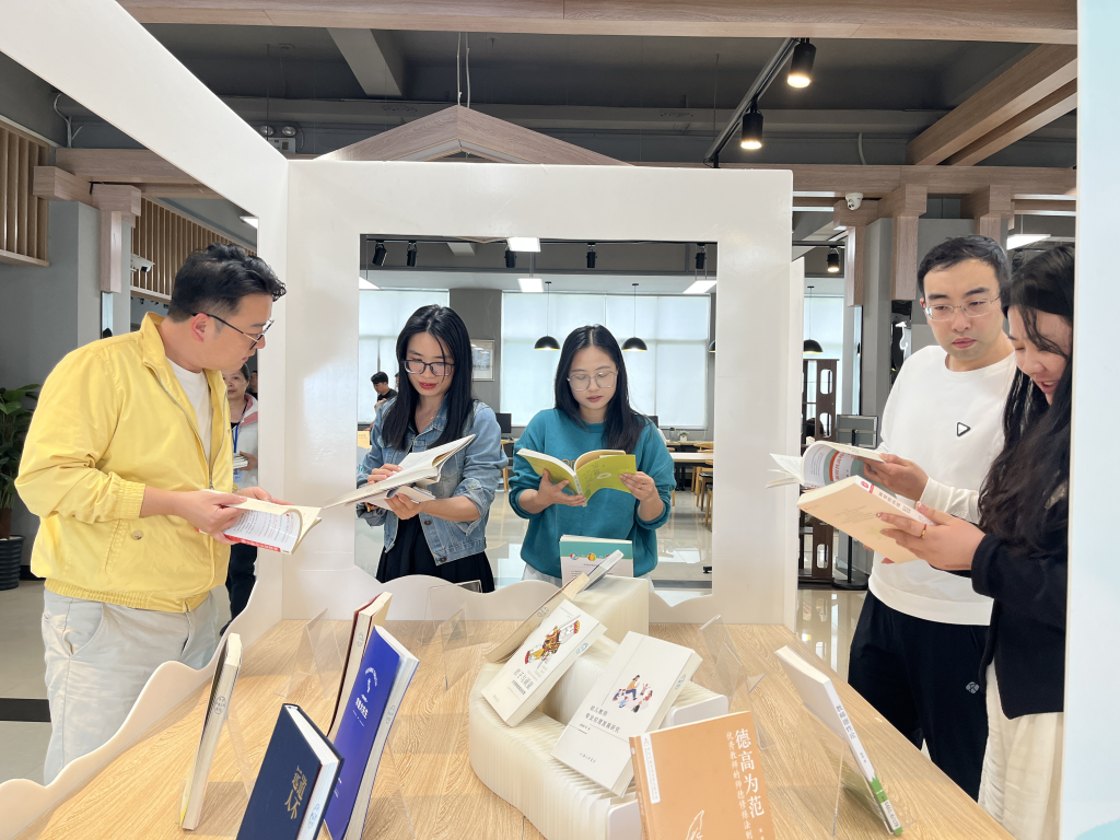 图书馆负责人向校领导汇报了书展的策划思路、展出情况及后续师德师风建设计划,表示本次书展至2025年5月底,书展结束后,所有书籍将全部馆藏于图书馆一楼,设师德师风教育书籍专栏,供广大教师借阅。后续将结合读书分享会、师德案例研讨、教师阅读推广等活动,进一步营造崇德尚学的校园文化氛围。参与活动的青年教师代表纷纷表示,此次书展不仅提供了丰富的学习资源,更激励大家更激励大家增强教师的责任感、使命感、荣誉感,以教育家精神为引领,躬耕教坛、潜心育人。
