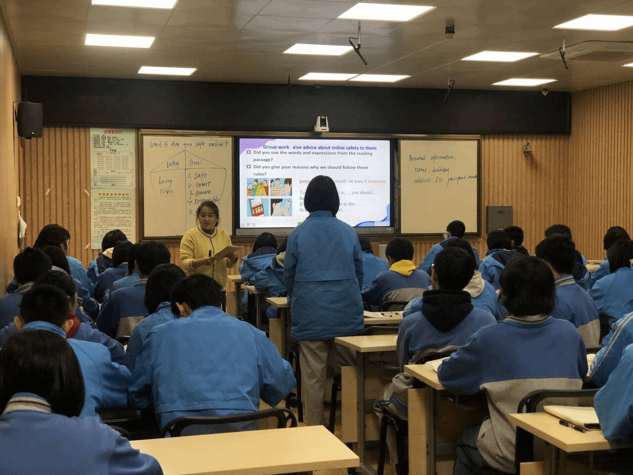 课堂以“安全上网”为主线,紧扣学生日常生活实际,采用“读前引导—读中解构—读后迁移”的阶梯式教学设计。读前环节,管晓菊老师通过情境提问激活学生已有知识;读中阶段,引导学生精准把握文本体裁、梳理行文逻辑、提炼关键信息;读后小组合作环节,学生运用所学语言针对具体网络场景建言献策,成功实现从文本理解到实践运用的能力跨越,充分展现了“任务驱动、学用结合”的教学理念。