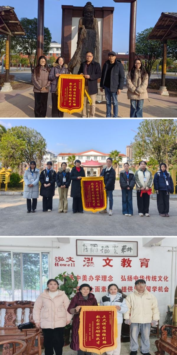 1月5日,外国语学院13名英语专业实习生在桂林市泓文教育集团旗下三所学校(桂林市豪文学校、豪文学校仕佳校区、桂林泓文实验学校)的为期16周教育实习圆满落幕。系列欢送与赠旗仪式温情举行,见证校校协同育人的丰硕成果。
