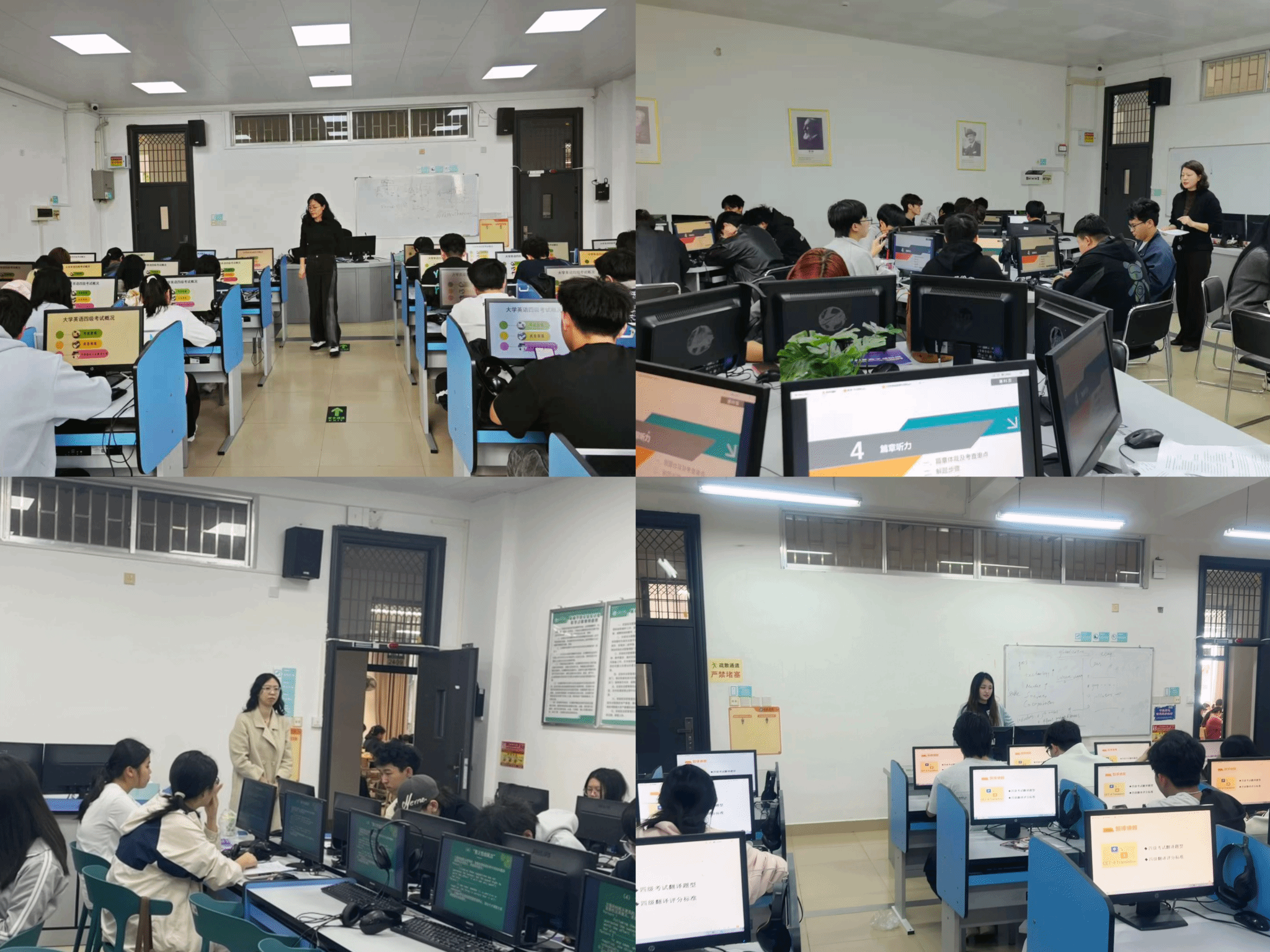 为贴合学生备考需求,让指导更具针对性和实用性,本次讲座特设2402、2403、2404、2405四个教室同步开展,由教研室李军宁、王珩、林思丞、周梦馨四位骨干教师担任主讲。讲座紧扣大学英语四级考试听力、阅读、作文、翻译四大核心模块,主讲教师结合历年考试真题与自身一线教学经验,细致拆解各题型的解题方法、应试技巧和高分要点,手把手带领学子攻克备考过程中的重点与难点,内容讲解兼具专业性与实操性。