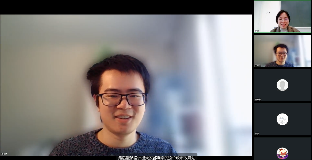 工作坊以腾讯会议为平台展开。李老师首先请同学们从内容编排、视觉设计、导航设计三个方面分别评价他设计的4个市政网站,找出其中异同并给出设计意见和建议。接着,李老师让同学们浏览了6个具有代表性的中西方城市市政网站(北京、南宁、柳州、芝加哥、悉尼、威斯敏斯特),同时结合中西方不同城市的市民意见,指出中国和西方国家城市在市政网站设计上的不同倾向及偏好。最后综合以上观点,给桂林市政府网站的内容编排提出建设性意见。整个工作坊安排紧凑,通过两位老师的引导,同学们观察细致,讨论积极,给出了十分有益的建议,教学效果良好。