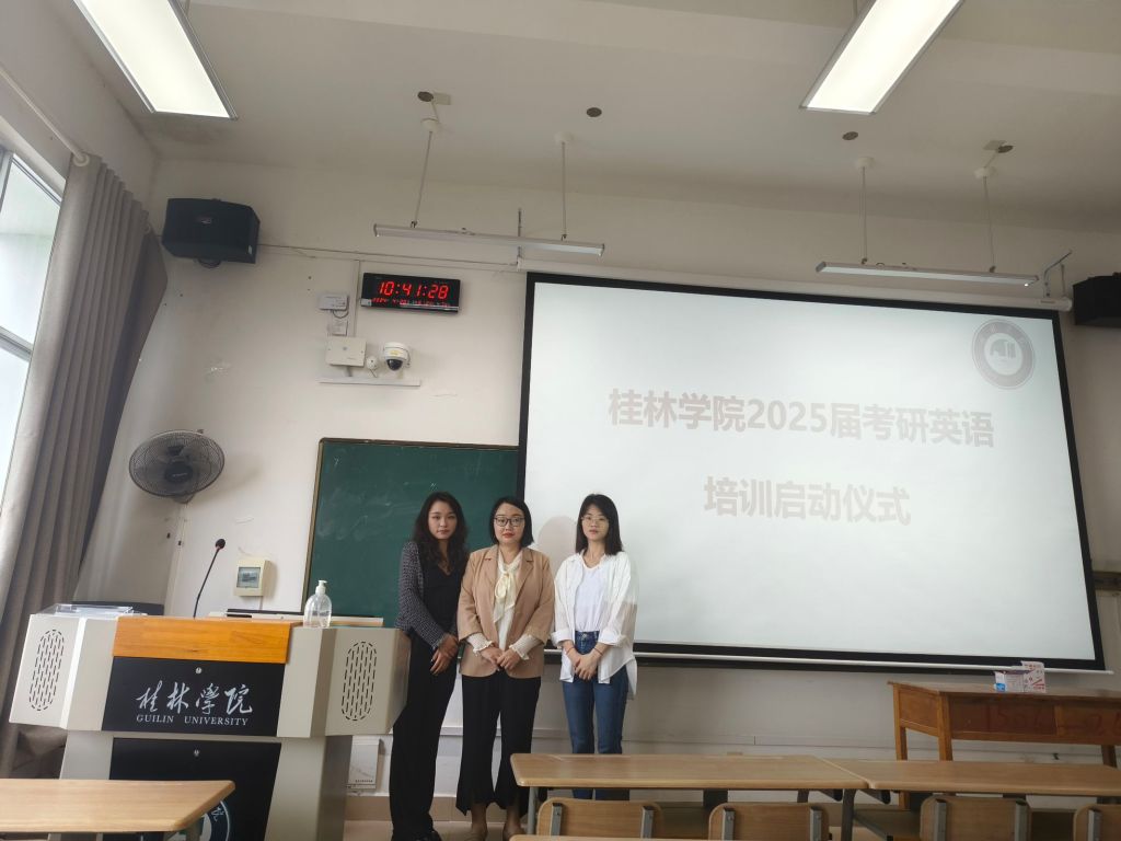 为全方位地提升学校考研学生英语科目的备考能力,由教务与产教融合处主办、大学外语教学部承办的桂林学院2025届考研英语培训于4月20日上午在至善楼2501教室正式启动,大学外语教学部考研英语课程培训组教师黄艳丽、周梦馨及参与此次培训的学生代表参加了启动仪式。仪式由人文学院学研社指导老师徐小媛主持。