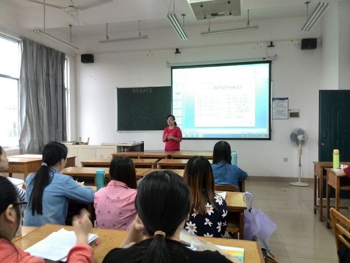 科技论文摘要写作即是英语专业应用文写作的一部分,也是毕业生撰写毕业论文必须要掌握的学术知识。陆老师针对2012级英语专业学生于6月即将开展毕业论文写作进行专门辅导,其对教材处理得当,知识点完整,讲授详略得当,讲练结合;上课过程中结合上一届毕业生的论文写作情况进行讲解,深入浅出,理论结合实际,让学生获益良多并获得了同行及领导的好评。