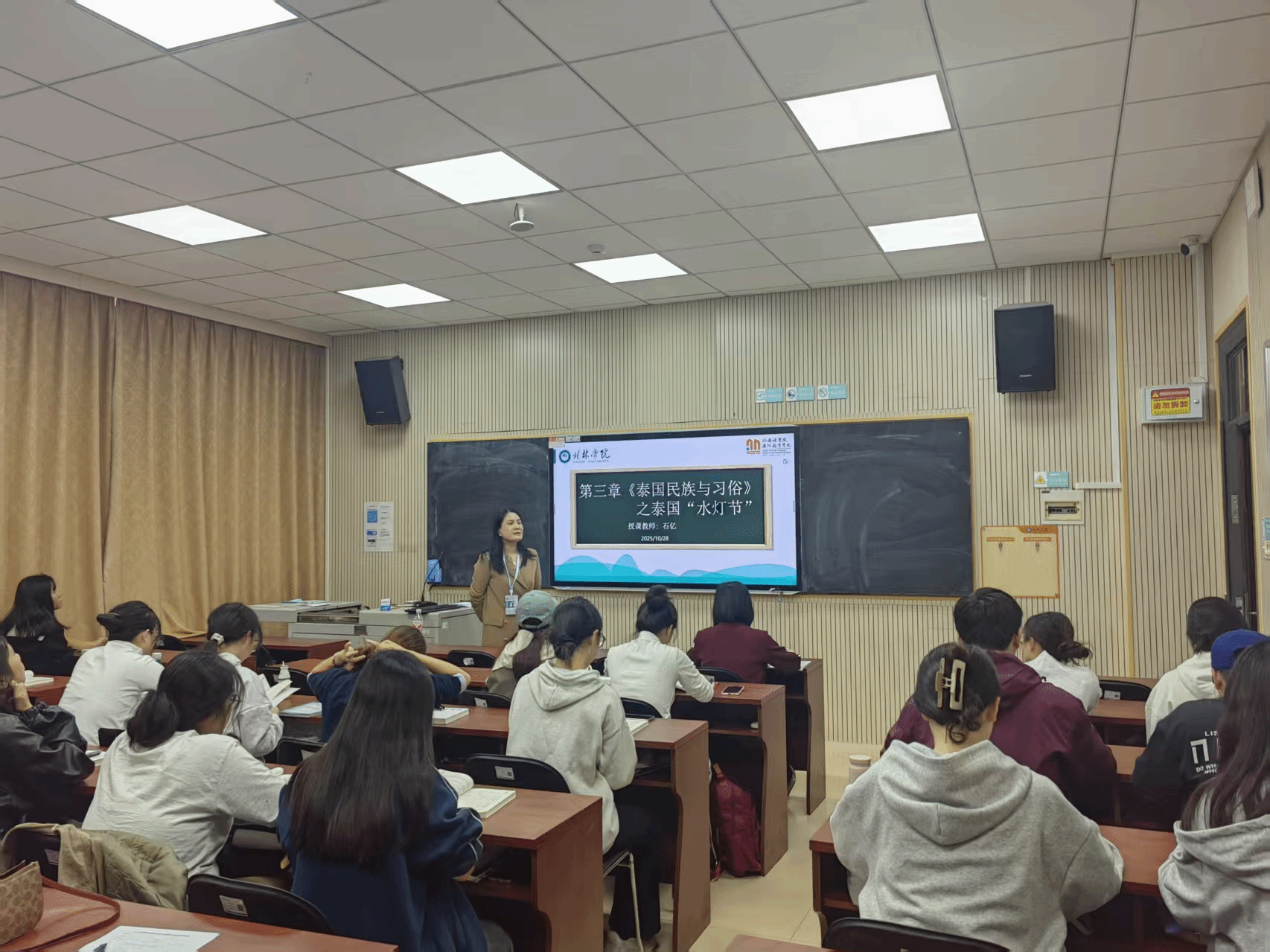 10月28日下午,泰语言文化教研室在至善楼2207教室举办泰语专业公开课暨教学研讨活动。活动以推动课程教学创新、促进教师协同成长为目标,由泰语专业教师石亿主讲《泰国民族与习俗之水灯节》,泰语专业教师团队全程参与。