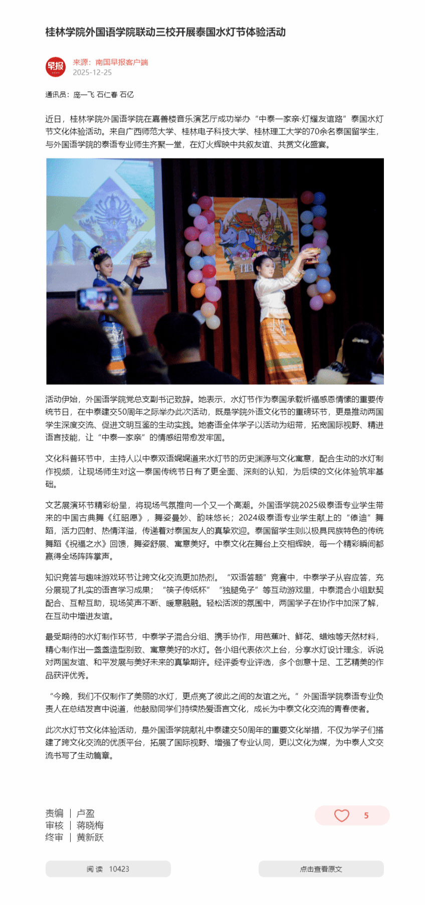 南国早报:桂林学院外国语学院联动三校开展泰国水灯节体验活动
