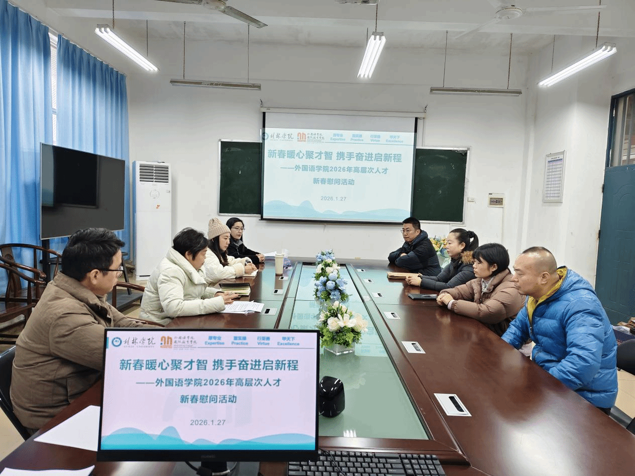 为凝聚人才力量、共话发展蓝图,1月27日下午,外国语学院在至善楼2108会议室召开高层次人才新春慰问座谈会。副校长兼外国语学院院长何玲出席活动,学院领导班子与博士教师代表齐聚一堂,共迎新春佳节,共商发展大计。活动由学院党总支书记主持。