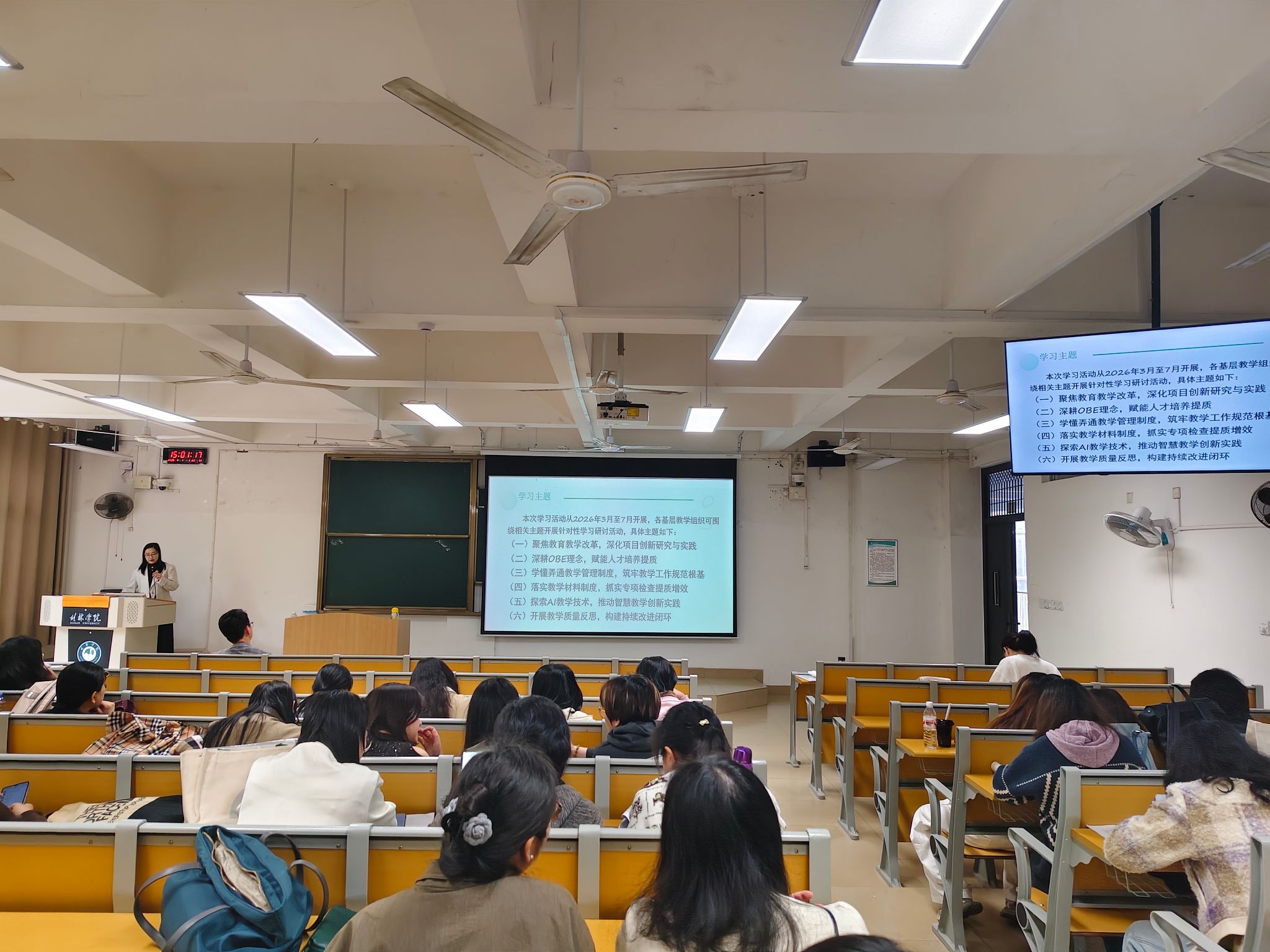 会议重点对第三轮“磨课”及近期教学工作进行全面布置,明确了大纲自查、考核材料自查、磨课实施、毕业论文整改、教研活动开展、课程思政指导六大核心任务。其中,磨课工作将以研磨教学材料为核心,抓实“优质示范课引领+薄弱课程帮扶”,重点突破课程思政生硬融入、AI技术赋能不足两大痛点,分专业邀请校外专家开展精准指导,按“动员部署—全面实施—总结提升”三个阶段推进;同时要求限期整改毕业论文选题重复率高、指导记录填报不及时等问题,严格落实教学大纲自查的四大核心要求,确保课程教学各环节逻辑闭环。此外,会议还明确了春季学期基层教学组织月度学习主题与实施要求,强调推动AI教学技术与课堂深度融合,实现教研活动常态化、实效化。