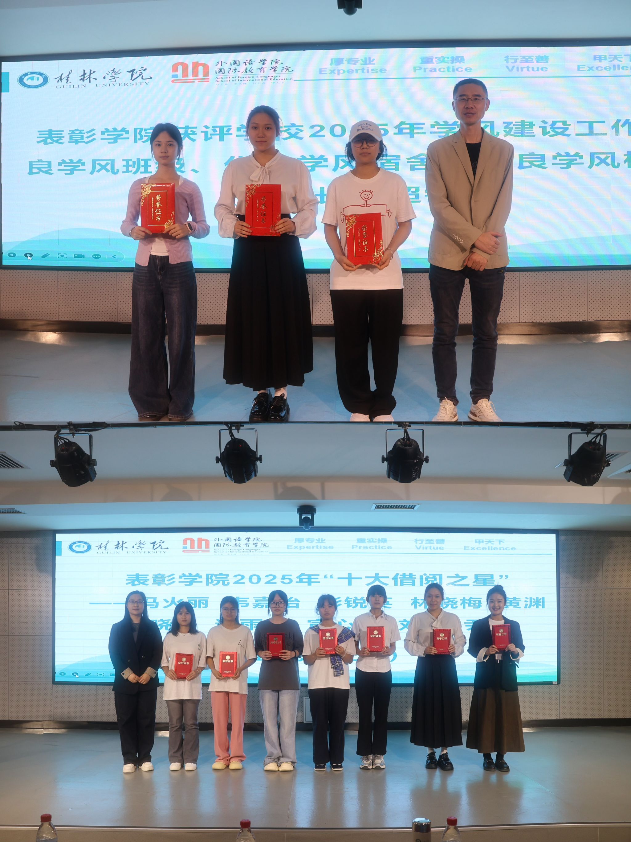 表彰环节中,团总支书记宣读学校表彰文件。两位副院长分别为优良学风班级、宿舍、学风标兵及学院“十大借阅之星”颁奖,以榜样力量激励全体学子勤学善思、笃行不怠。