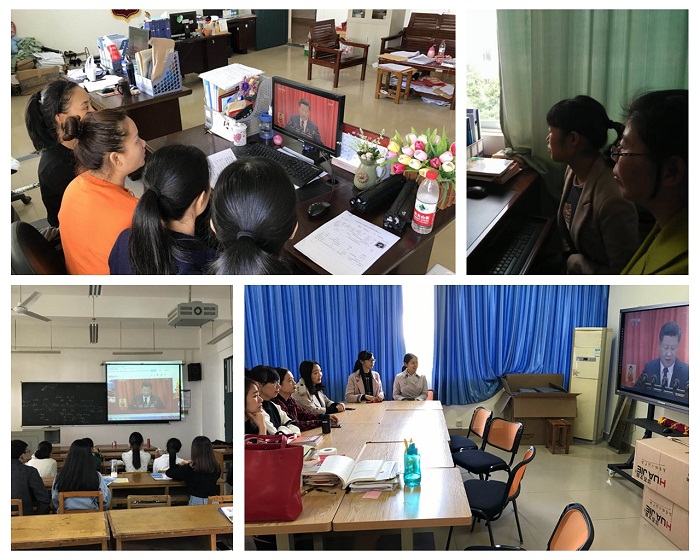 月18日,中国共产党第十九次全国代表大会在北京人民大会堂隆重开幕,外语系党总支委组织师生在教室、办公室、党员活动室、学生宿舍等地通过电视、网络、广播等多种方式收听收看,认真学习领会大会精神。