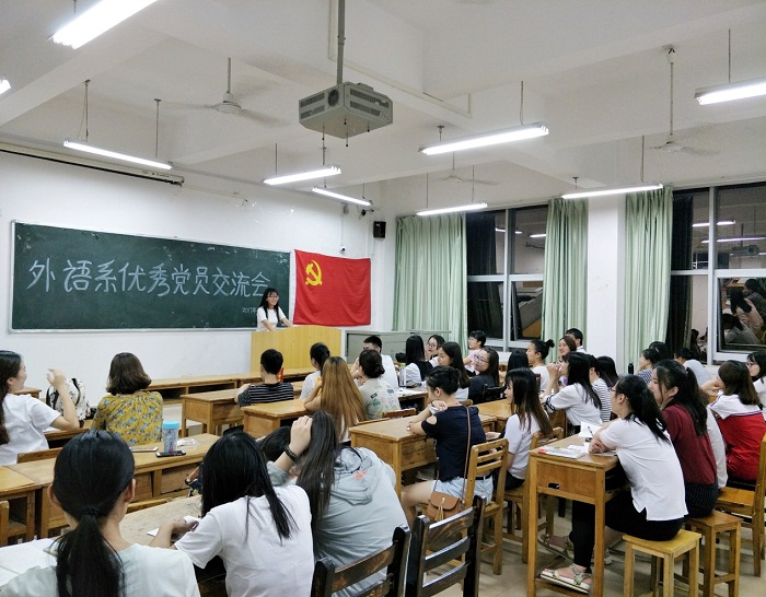 会议开始时,主持人简单介绍了外语系第十七期党课培训的学习情况及此次交流会召开的主题与意义。随后,优秀党员代表陈仕春学姐上台发言,以她的亲身经历讲述了她是如何从一名少先队员一路成长最终成为一名优秀党员,并分享了她的心路历程:成为党员对她在生活上和思想上的影响,对学习及就业等的积极作用,最后对学弟学妹提出许多有针对性的建议和忠告,并向党员发展对象传授许多指导性的经验。