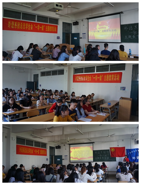 月4日青年节当天,外语系团学在1209教室组织开展“一学一做”会议,会议在响亮的共青团团歌中召开,会议主要通过讲解PPT和播放视频引导着团员们走近“一学一做”,“一学一做”主要要求学生认真学习习近平总书记系列重要讲话精神和治国理政新理念新思想新战略的重要举措,是在思想上、政治上、行动上向以习近平同志为核心的党中央看齐,做合格共青团员。