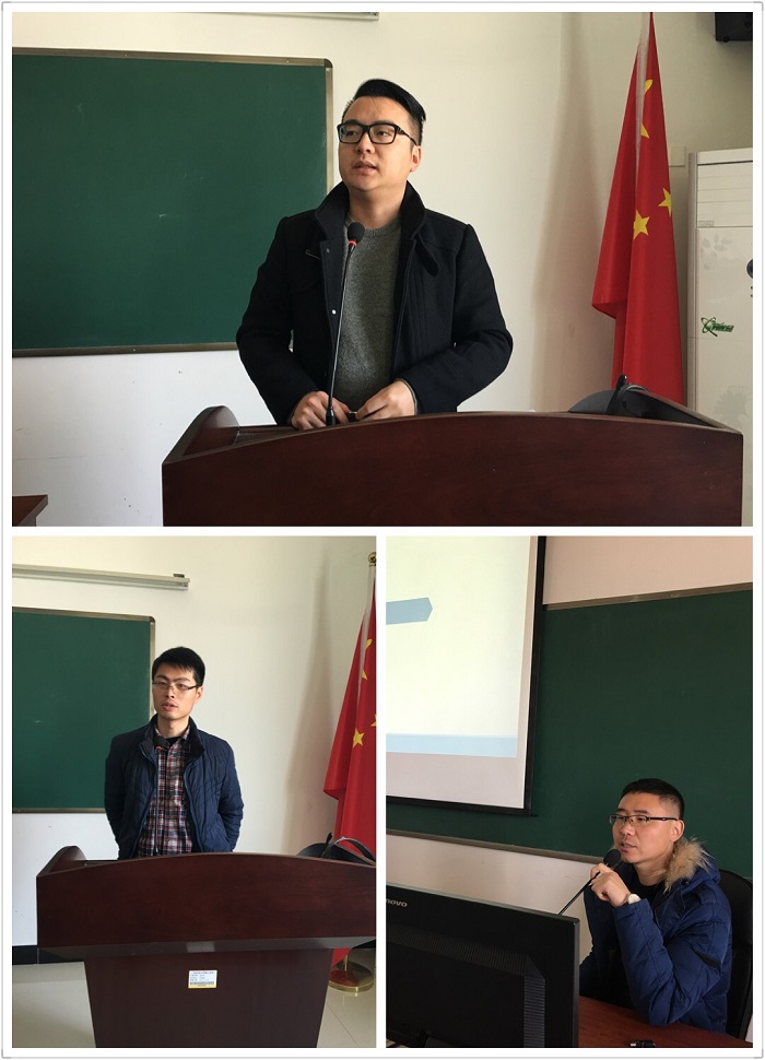 图:外语系党总支书记陈俊杰、副书记葛魏、外语系副主任张超峰发言