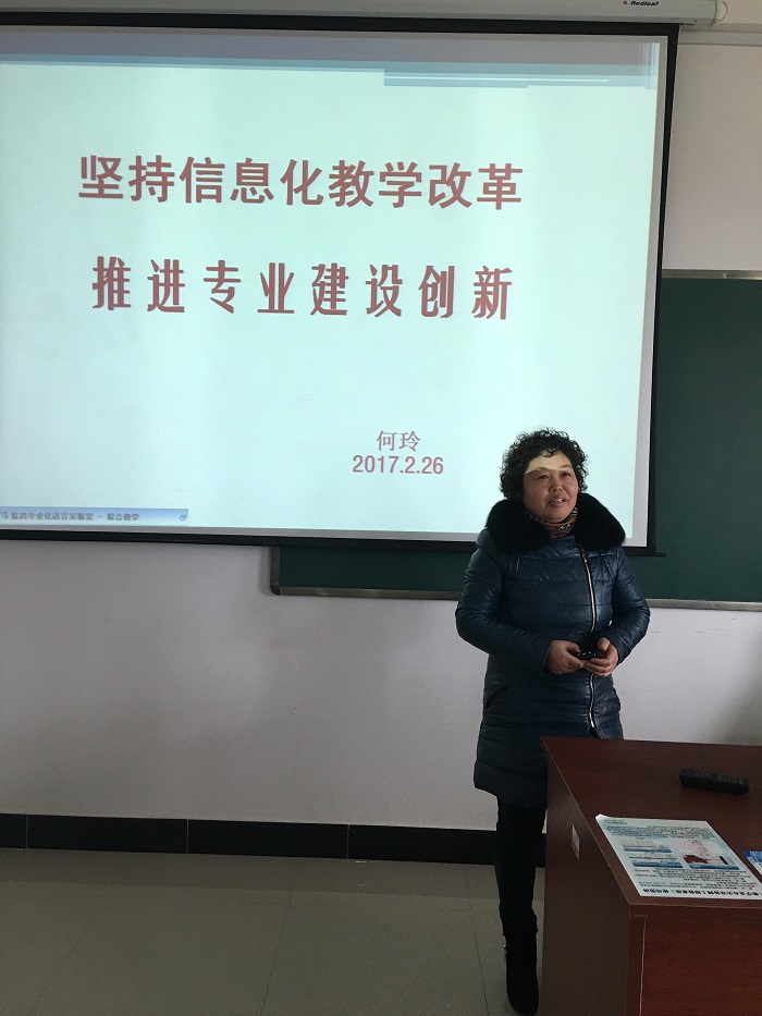 年度取得的成绩作出了回顾与思考,对新学年系领导班子成员以及各教研室的主要任务作出布置,指明了推进专业建设的路径。她指出,外语系过去的一年在信息化教学改革方面取得了许多的成绩,但仍有较大的进步空间。最后,何玲主任就外语系本学期重点工作作出了安排。