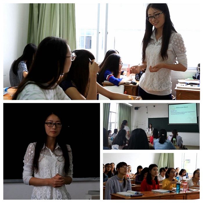 为加强我系教师之间的交流与合作,促进新入职教师教育教学能力的提高,2016年10月10日上午8:20—10:30,基础语言教研室在公共教学楼2309教室开展公开课活动。主讲教师缑娅兰面向2014级英语专业1班学生进行《综合英语(5)》的公开授课活动。外语系系主任何玲老师、周国翠、赵莉莉、覃浩等外语系各教研室的老师们前来参加此次公开课。