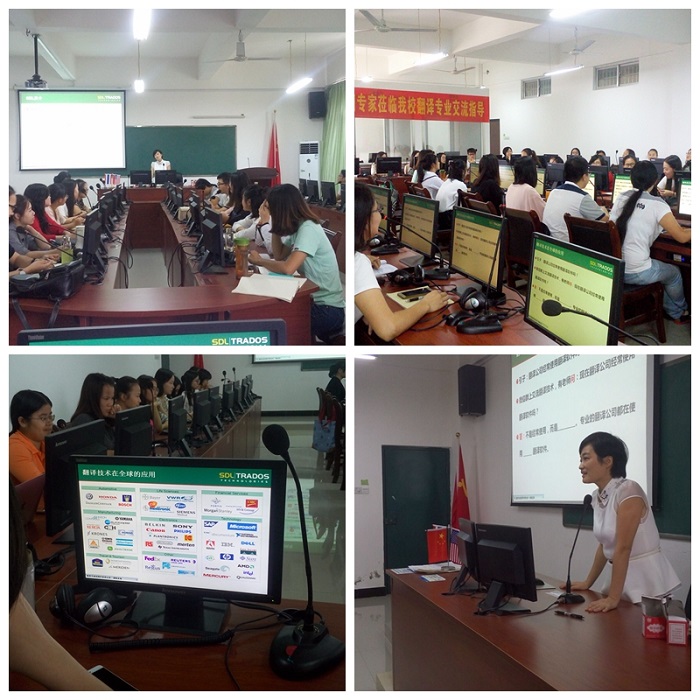 2016年10月19日,来自全球语言服务龙头企业SDL Trados的专家莅临我校与翻译专业教师探讨新时代语言服务人才培养。作为全世界最主流的计算机辅助软件工具,如:翻译记忆、统一编辑界面、高级编辑工具、自动校审、上下文匹配、实时术语识别及术语校验等,Trados为快速创建、编辑和审校高质量翻译提供了一套集成的工具,其在全球拥有众多的分支机构,包括德国、比利时、法国、爱尔兰、英国、瑞典、瑞士、中国、日本、和美国等。上午十一点Trados公司客户经理吴蓓女士和教育行业客户经理刘向君一行人抵达外语系,与外语系领导何玲教授、翻译专业教研室骨干教师就双方的合作事宜进行交流。下午14:00,吴蓓经理为翻译专业学生做了行业指导,就翻译专业的就业前景、语言服务市场的用人要求、计算机辅助翻译的重要性、教指委对翻译人才的要求等方面做了一系列的详细解读。通过此次交流,我系和Trados公司建立了良好的合作关系,为翻译专业的应用型人才培养提供了专业的实践平台。