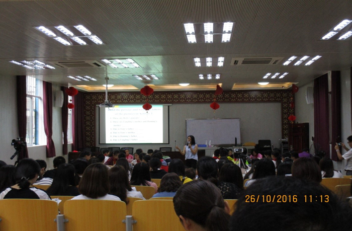 近日,我系英语专业的毕业教育实习接近尾声,为了更全面了解学生的实习情况和实习效果,外语系何玲主任,张超峰副主任,陈俊杰书记,葛巍副书记带领外语系老师分别前往实习基地学校桂林市八中,十一中,十六中和任远中学听取实习生上汇报课,2014级英语专业学生也跟随进行观摩见习。