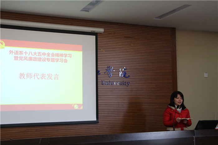 外语系举行十八届五中全会精神学习 暨党风廉政建设专题系列活动