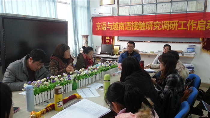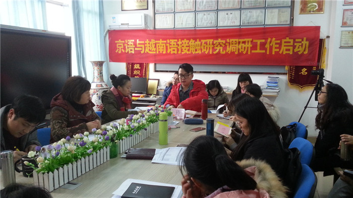 之后,受课题主持人何玲老师的委托,系副主任肖立章老师对区级项目“东南亚国家英语发展史研究”进行了开题报告会,就项目的开展及分工进行了阐述,也做出了具体的建议。越南语教研室主任郑克晓也对在另一项重要课题项目“京语与越南语接触研究调研启动”规划出了明确的方案,成员组对项目的顺利启动表达出极大的信心。
