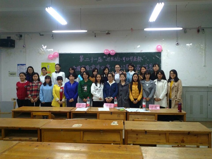 第二十届“21世纪 可口可乐杯”全国英语演讲比赛——漓院选拔赛于2015年11月11日在1501教室顺利举办,外语系熊惠琴,金玲,梁晨三位专业教师担任此次评委。