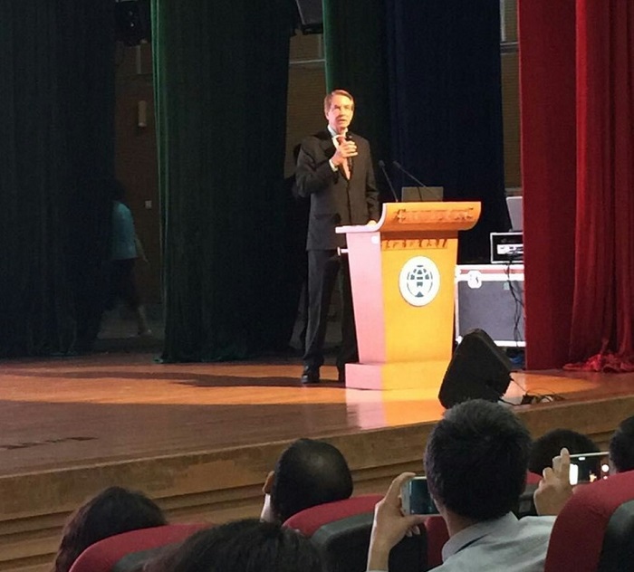 孙有中教授在演讲中说到培养英语专业人才应把人文素养与专业知识相结合,既要培养他们丰富的跨学科专业知识,跨文化交际能力,也要培养他们的世界观、人生观、价值观,培养他们良好的道德品质、中国情怀、国际视野以及社会责任感。