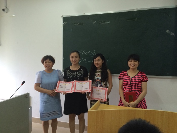 在接下来的环节中,周燕萍、俞蓓、覃浩三位老师分别登台发言,介绍近期赴外地学习、培训老师的心得与体会。周燕萍老师以“英语专业的创新与发展”为题指出,文科教师面临着转型发展的形势,教师应该在应用实践型教育方面做好引导作用,使理论学习与技能获得相互补充,达到平衡。俞蓓老师发言的题目是“文华在线与英语课堂的融合”,重点介绍了文化在线供应商提供的信息技术与自己的教学的深度融合,以及互动教材、教学云平台、教学服务整合一体的混合式学习服务的体验;覃浩老师则以“蓝鸽与外语教学之我见”发言,大学英语教学应该牢牢以学生需要为指导,以effective learning为中心,既要体现提升学生综合素质与全面发展的育人价值,也要体现对基础语言能力的重视。