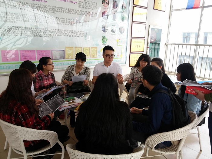 为增强外语系学生的就业竞争力、提高职业技能、拓宽就业渠道,2015年3月31日中午,在外语系文化长廊举行了国家涉外秘书职业资格证考试的宣传动员会议。