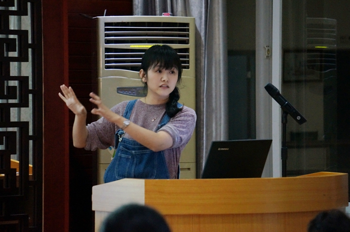 图为俞蓓老师陈述自己的教学理念