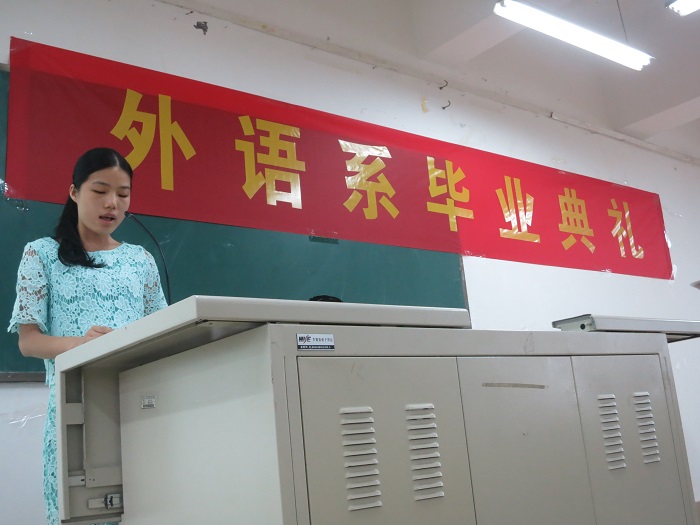 感恩母校,良师寄语。6月23日上午,外语系在001教室举行了2014届学生毕业典礼。外语系主任蔡马兰、党总支书记周德胜、党总支副书记陈俊杰以及部分教师代表参加了典礼。