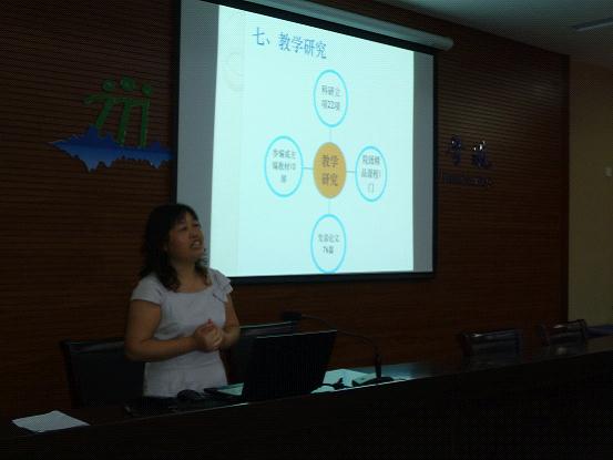 课程——《综合英语》,何玲老师介绍了我系教师发展与学生能力的培养。